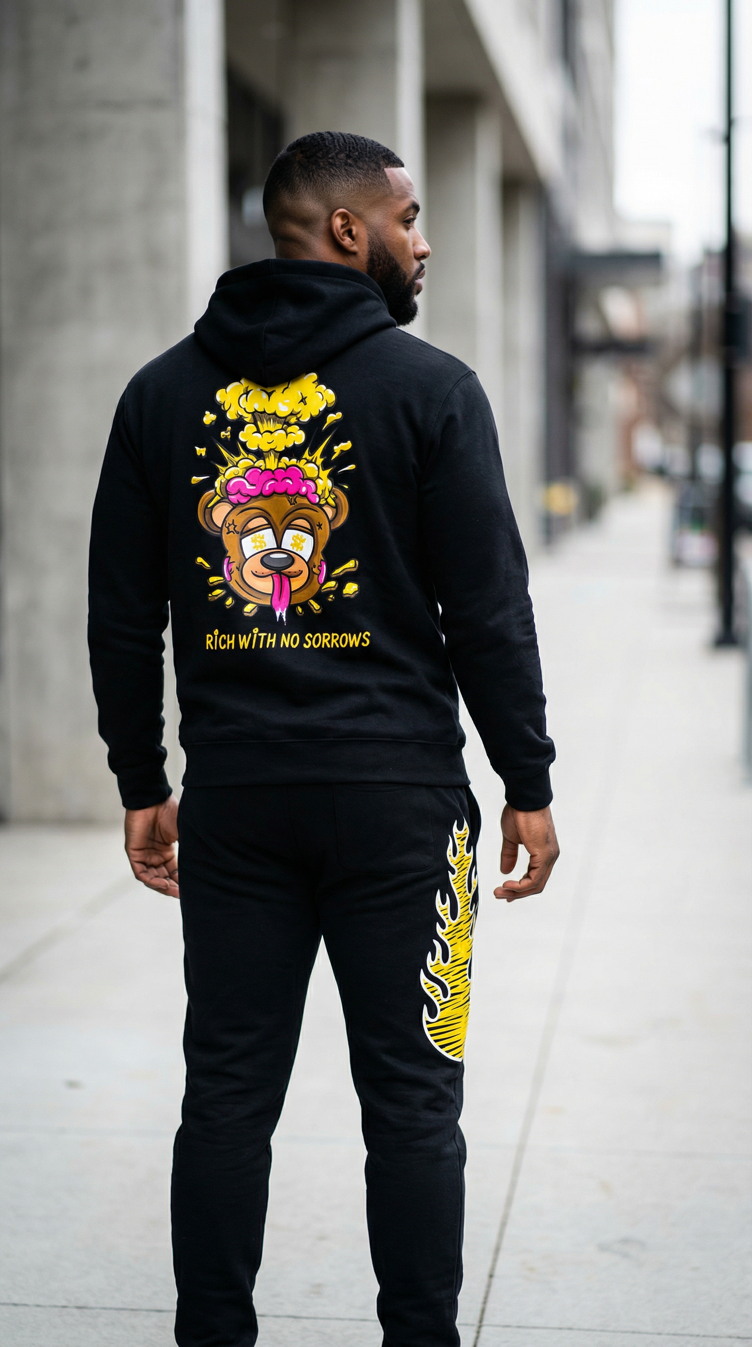 Complete matching tracksuit set includes hoodie and joggers. Premium comfort and style for the modern wardrobe.